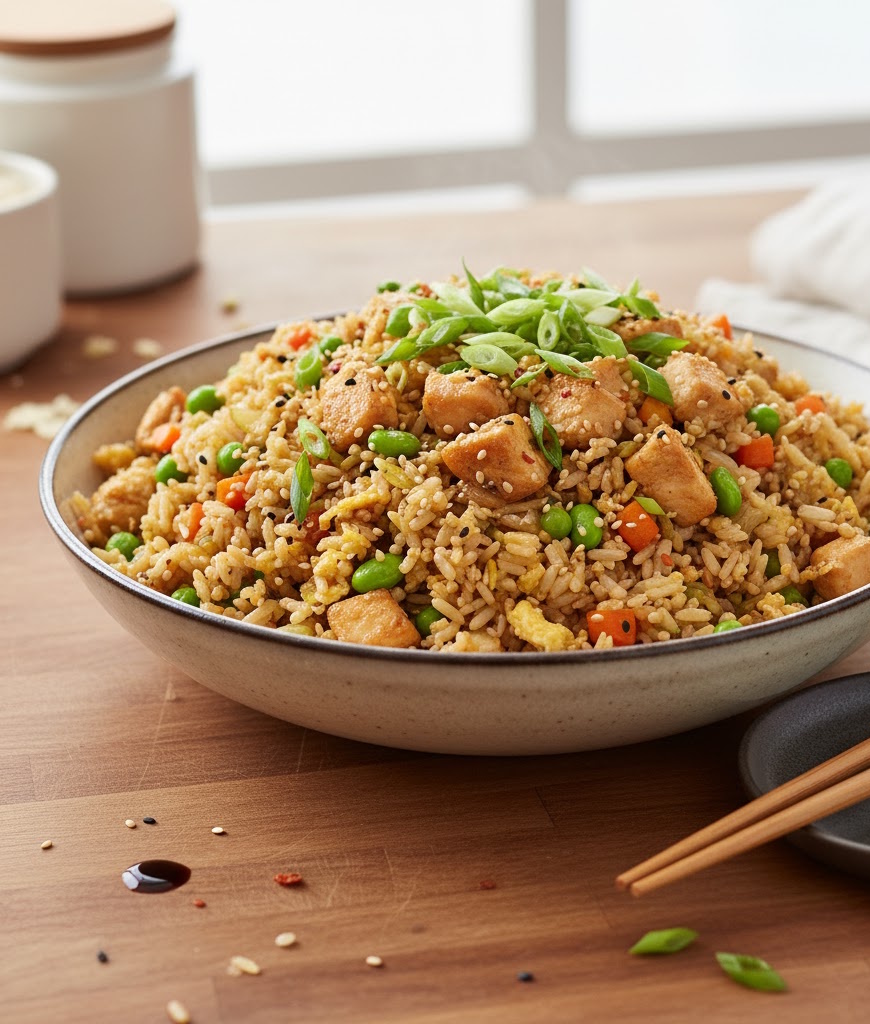 Description: A healthier, high-protein take on the classic takeout favorite, designed to keep you full and satisfied. This fried rice recipe is perfect for fat loss and busy lifestyles, leveraging smart shortcuts to create a delicious, macro-friendly meal in under 30 minutes.